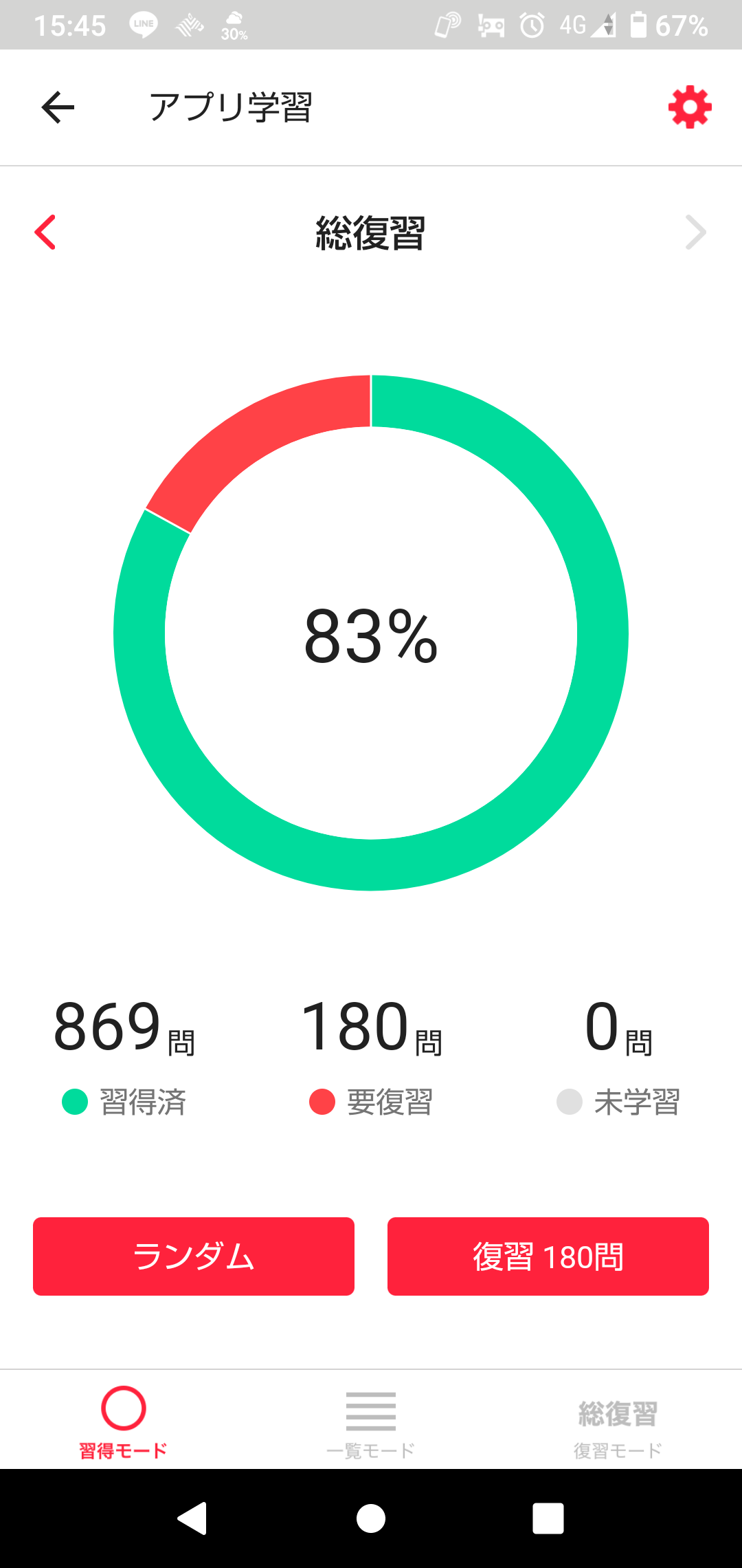 5周目は、1049問中正解は869問、不正解は180問で正答率は83%でした。